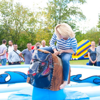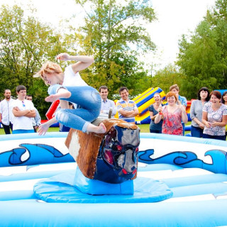 Самый востребованный аттракцион на корпоративных мероприятиях! Используется как в закрытых помещениях так и на открытых площадках. Имеет 8 уровней сложности. Попробуйте удержаться в седле разъярённого быка!