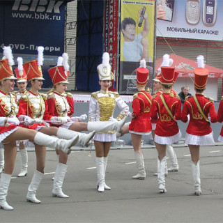 Если вам доведётся услышать барабанную россыпь, увидеть милых девушек в «гусарских» костюмах, обязательно поспешите к эстраде - Вас ждёт яркое зрелище!