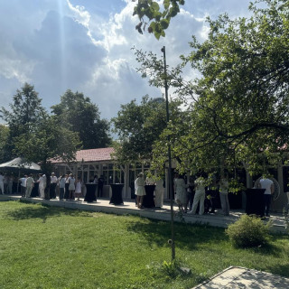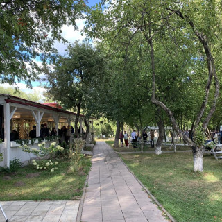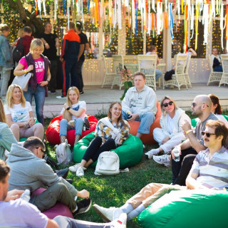 1. Основная поляна. На территории сада находится многофункциональный зал - это всесезонная тентовая конструкция площадью 550 кв.м. используется для проведения банкетов, фуршетов, конференций, семинаров и выставок. В зале имеется гардероб, барная стойка, диваны для зоны отдыха. Курение в зале запрещено. Территория сада идеально подходит для проведения тимбилдинга, различных активностей, корпоративных торжеств и пикников, организации family-party зимой и летом. В тёмное время сад освещается. Одновременно используя зал и территорию сада, возможно организовать мероприятие для 400-600 гостей.